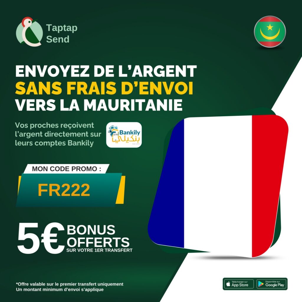 في خطوةٍ تعزّز حلول التحويل المالي السريع والآمن، يوفّر تطبيق Tap Tap Send (تاب تاب سند) خدمة إرسال الأموال دون أي رسوم إلى تطبيق Bankily (بانكيلي)، لفائدة المستخدمين في بلجيكا وإسبانيا وإيطاليا.